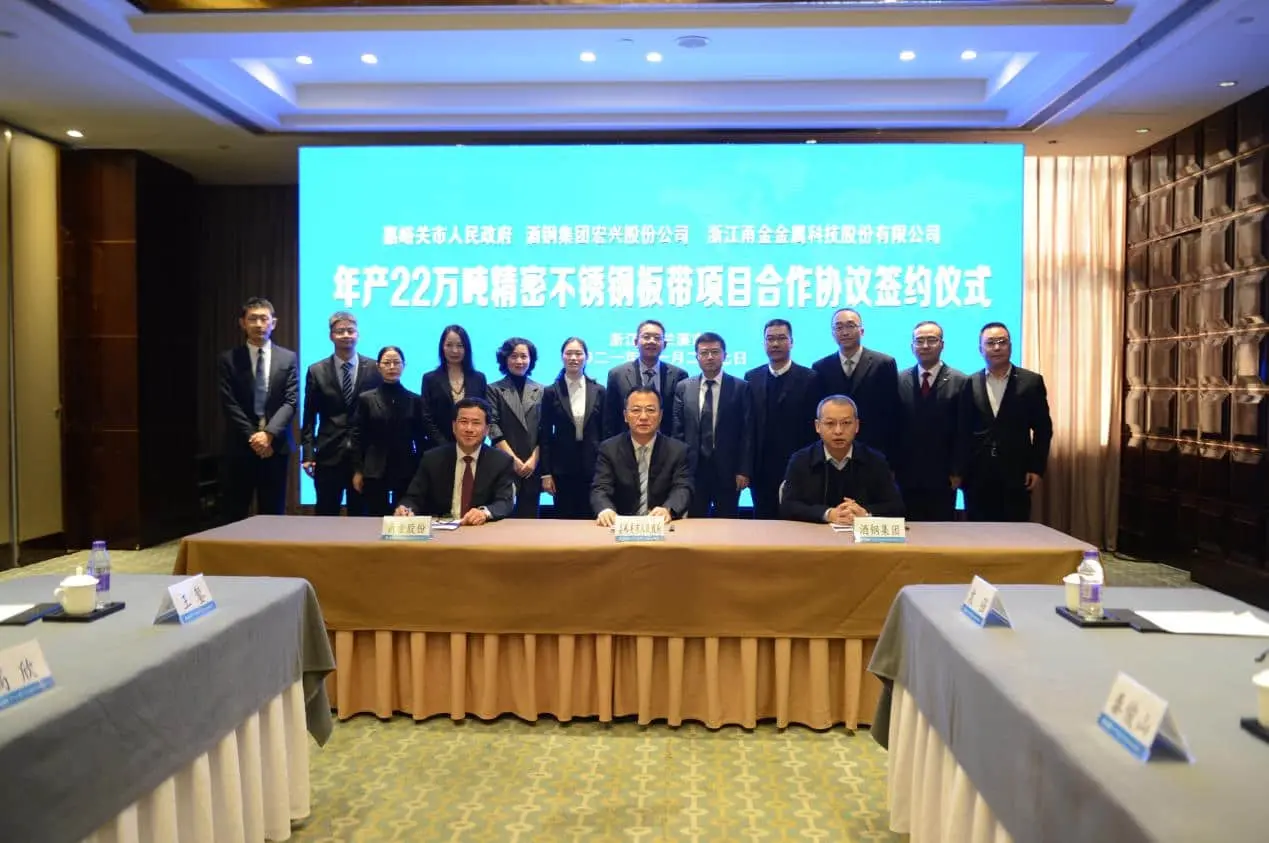 11月27日上午,甬金股份年产22万吨精密冷轧不锈钢板带甘肃甬金项目在浙江兰溪隆重举行签约仪式。现场出席仪式的嘉宾主要有…